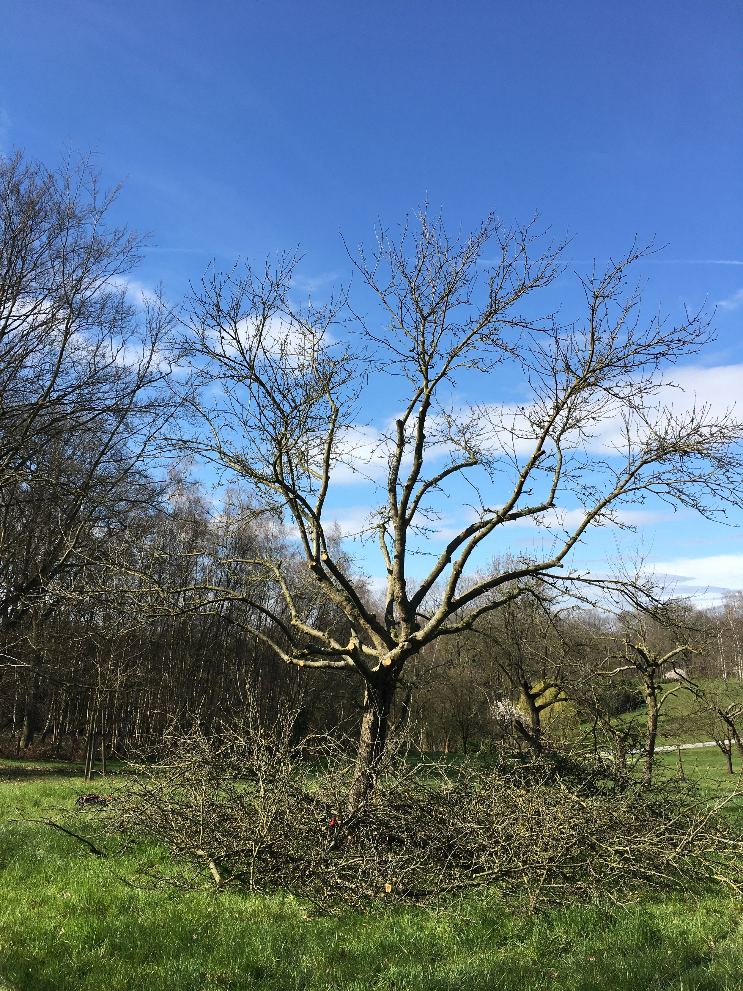 Oude bomen hebben vaak een wirwar van takken. Deze takken schuren vaak tegen andere. Er zijn veel dode en oude takken die nog amper vruchten dragen. Door deze te snoeien dwingen we de boom om nieuwe, vruchtdragende takken te maken.